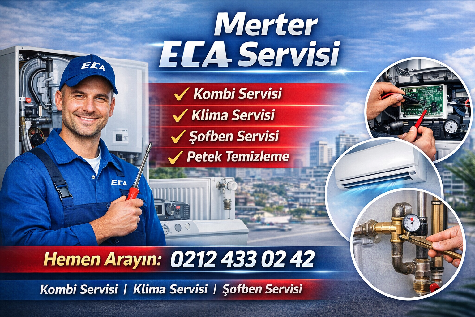 DevamıMerter bölgesinde ECA servis hizmeti arıyorsanız, hızlı, ekonomik ve garantili çözümlerimizle hizmetinizdeyiz. Kombi, klima ve ısıtma sistemlerinde uzman teknik ekibimiz ile arızalara anında müdahale ediyor, cihazlarınızı kısa sürede tekrar sorunsuz çalışır hale getiriyoruz. Tüm servis işlemlerimiz 1 yıl garantili olarak yapılmaktadır. Merter’de Hızlı ve Yerinde Teknik Servis ECA cihazlarınızda oluşan arızalar günlük yaşamınızı olumsuz etkileyebilir.…